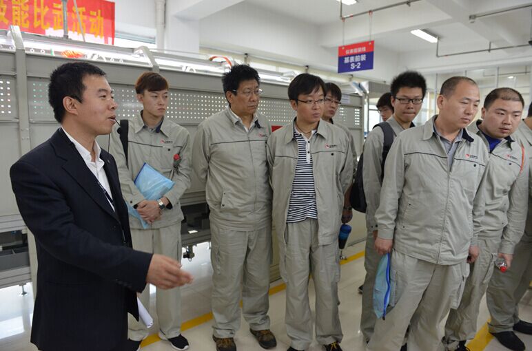 隨后,學員們分兩批在天信章欽養(yǎng)講師、陶朝建講師的帶領(lǐng)下參觀天信,高科技的展廳、規(guī)范整潔的生產(chǎn)車間、細致的看板管理、企業(yè)文化建設(shè)等方面,都引起了大家濃厚的興趣。