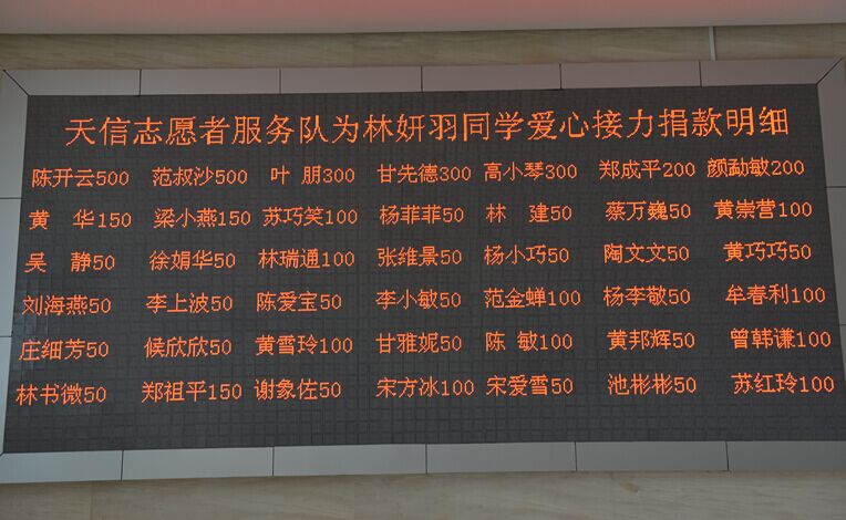 當晚,天信集團黨委獲悉這一情況后,在黨員微信群中率先發起倡議,號召廣大黨員行動起來,開展愛心接力募捐活動,向林欣羽家庭伸出援助之手。“我要參加愛心募捐!”“我也要接力!”黨員們在微信群中你一言我一語,紛紛加入到愛心接力的活動中,到4日上午八點上班前,參加接力報名的黨員序號已排到四十五位。