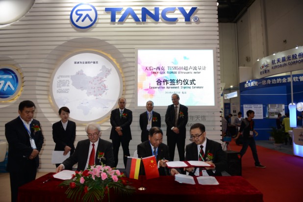 本次北京參展還有一項(xiàng)重要議程,西克天信USM500超聲波流量計(jì)合作協(xié)議簽約儀式于10:00正式開始,參加簽約儀式的有來自北京西克麥哈克公司和德國西克的領(lǐng)導(dǎo)以及天信公司董事長,總裁,技術(shù)總監(jiān),參展商代表等。營銷中心總監(jiān)范曄主持簽約儀式,陳開云董事長致歡迎辭,西克銷售經(jīng)理班吉爾先生代表西克公司發(fā)表致辭。本儀式簡約而隆重,許多載入天信展會(huì)上的許多參展商也應(yīng)聲來到天信展臺(tái),為之喝彩。本次合作,有利于發(fā)揮各自優(yōu)勢(shì),深化互利合作,共同推進(jìn)超聲波流量計(jì)產(chǎn)品及技術(shù)領(lǐng)域的長足發(fā)展。
